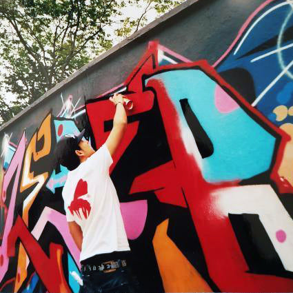 Self-taught, he discovered graffiti, digital, and print mediums organically through early experiments in visual art.